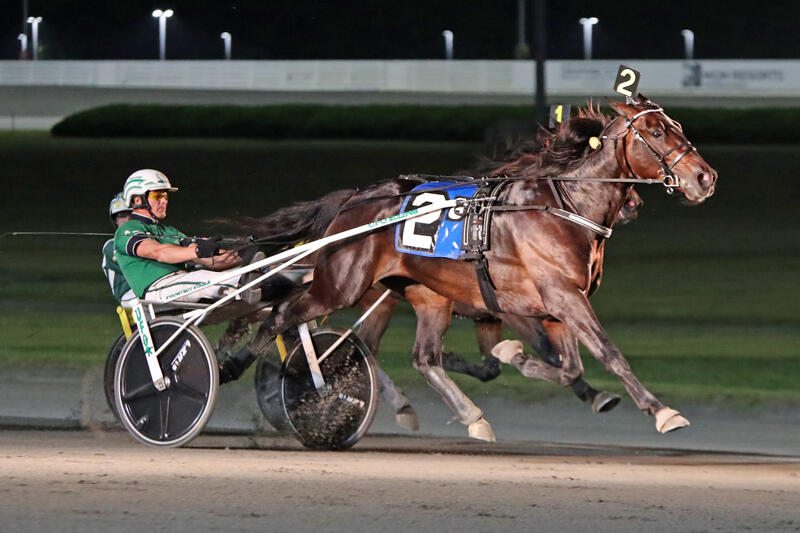 In spektakulärer Manier holte sich Secret Volo das mit 100.000 Dollar dotierte, über die ungewöhnliche Distanz von 1.709 Metern (11/16 Meile) fühende Pendant für die dreijährigen Traber-Stuten.