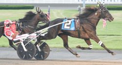 „Berkery J vor Chaptiama“ hatte es vor drei Wochen in Runde eins der NYSS in Vernon Downs geheißen. Nun war Rache süß für den Schützling von Trond Smedshammer, mit dem Brian Sears von der „3“ sofort ans Regiepult schmetterte und sein Bezwinger hinter R Herbie Blue Chip als Dritter des Gänsemarschs unterschlüpfte.
