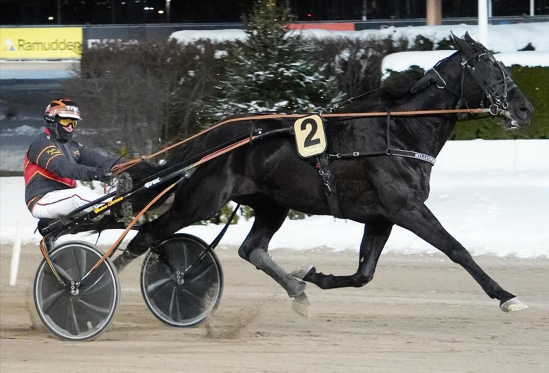 Solvalla, Samstag, 2. Dezember 2023. Respekt - das hat Freddie Larsson perfekt hinbekommen. Vor 1.270 Zuschauern, die vor Ort bei minus 6 Grad der Freiluftveranstaltung den Rahmen gaben, krönte sein Herzenspferd Milliondollarrhyme den 100. Auftritt seiner am 3. Juli 2017 mit einem achten Platz und 5.500 SEK sehr dezent begonnenen Karriere mit dem 19. Sieg.