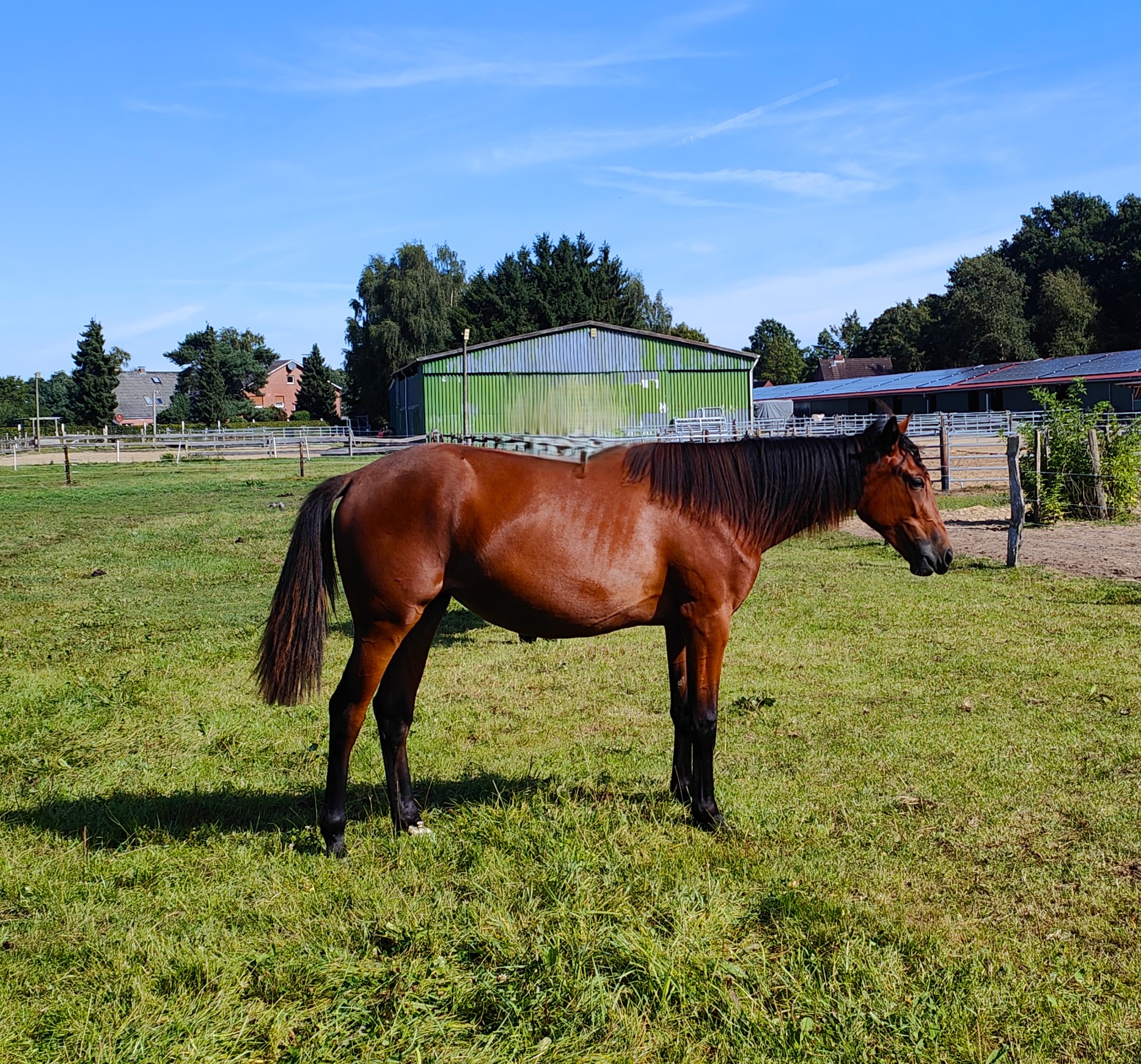 Fiona ist eine braune Stute mit hervorragender Abstammung und großem Potenzial. Sie kann sowohl als Renn-, Zucht- oder Freizeitpferd eingesetzt werden und bringt die besten Voraussetzungen für eine erfolgreiche Zukunft mit. - Rasse: Warmblütiger Traber - Farbe: Braun - Geburtsdatum: 11.05.2024 - Mutter: Monas Ragazza (SE) (e: ENJOY LAVEC, u: MONAS SPERANZA, ee: PINE CHIP (US), ue: SAVAS HANOVER (US)) - Vater: Flocki d'Aurcy (FR) (e: READY CASH (FR)) Herausragende Blutlinie & Nachwuchserfolge: Mütterlicherseits (Monas Ragazza): Monas Ragazza hat bereits mehrere erfolgreiche Nachkommen hervorgebracht: - TIMOTEJS KLAVE (2018, Wallach, ca. 8.400€ Preisgeld bisher) - TIMOTEJS MESSENGER (2020, Wallach, ca. 6.300€ Preisgeld bisher) - TIMOTEJS NOVA (2021, Stute, ca. 4.000€ Preisgeld bisher) - TIMOTEJS OBELIX (2022, Hengst, noch keine Rennen) - TIMOTEJS PICCOLINA (2023, Stute, noch keine Rennen) Väterlicherseits (Flocki d'Aurcy): Flocki d'Aurcy ist Vater von zahlreichen erfolgreichen Rennpferden: - A TEASER (2020, Stute, ca. 170.000€ Preisgeld bisher) - COIN BOY L.A. (2021, Wallach, ca. 98.000€ Preisgeld bisher) - NICE RUN (2020, Wallach, ca. 35.000€ Preisgeld bisher) - VIKING LANE (2020, Wallach, ca. 26.000€ Preisgeld bisher) - LOVELY RATZEPUTZ (2020, Stute, ca. 25.000€ Preisgeld bisher) - PERFECT ZON (2020, Wallach, ca. 22.000€ Preisgeld bisher) Mit dieser hervorragenden genetischen Grundlage bietet Fiona ideale Voraussetzungen für die Zucht oder den Renneinsatz. Charakter & Potenzial: - Charakter: Fiona ist charakterstark, gleichzeitig aber lieb und menschenbezogen. Sie liebt Aufmerksamkeit und genießt es, gestreichelt zu werden. Dennoch zeigt sie ihre junge, temperamentvolle Seite. - Training: Fiona ist lernwillig, aufgeweckt und zeigt großes Potenzial. Sie versteht und setzt schnell um. - Einsatzbereiche: Ob als Rennpferd, in der Zucht oder für die Freizeit – Fiona ist ein vielseitig einsetzbares Pferd mit besten Anlagen.
