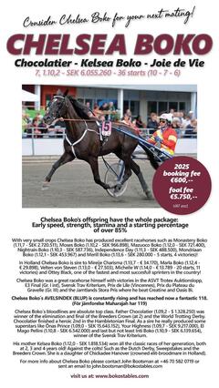 Trotz sehr kleiner Jahrgänge hat er den 2025 BREEDERS COURSE 2-JÄHRIGEN FINAL-Sieger REAGAN BOKO hervorgebracht, der das Finale letzte Woche mit einer beeindruckenden Leistung aus der Todesposition in 1:13,6 (SEK 557.000) gewann, den Zweitplatzierten der Svensk Uppfödningslöpning, MONESTERY BOKO (SEK 2,7 Millionen), den 10-fachen Sieger MOSES BOKO (SEK 957.000), MAZUOCCO BOKO (SEK 721.000), sowie die Siegertypen MERRIL BOKO (1:12,1), INDEPENDENCE DAY (1:11,3), MONDRIAAN BOKO (1:12,1) und NIGHTRAIN BOKO (1:10,3).