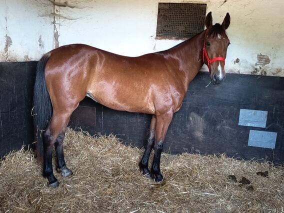 Noblesse Fafa ist eine schöne 2 jährige braune Stute. Sie wurde als Jährling eingebrochen, aufgrund von Wachstum in Ruhe getan und wird momentan wieder antrainiert. Noblesse Fafa hat französische Papiere. Sie ist gesund. Entwurmt und geimpft und brav im Umgang. Sie steht momentan im Offenstall in der Stutenherde und macht wirklich alles sehr nett. Wenn Sie sich diese schöne französische Stute ansehen möchten, rufen Sie mich gerne an.