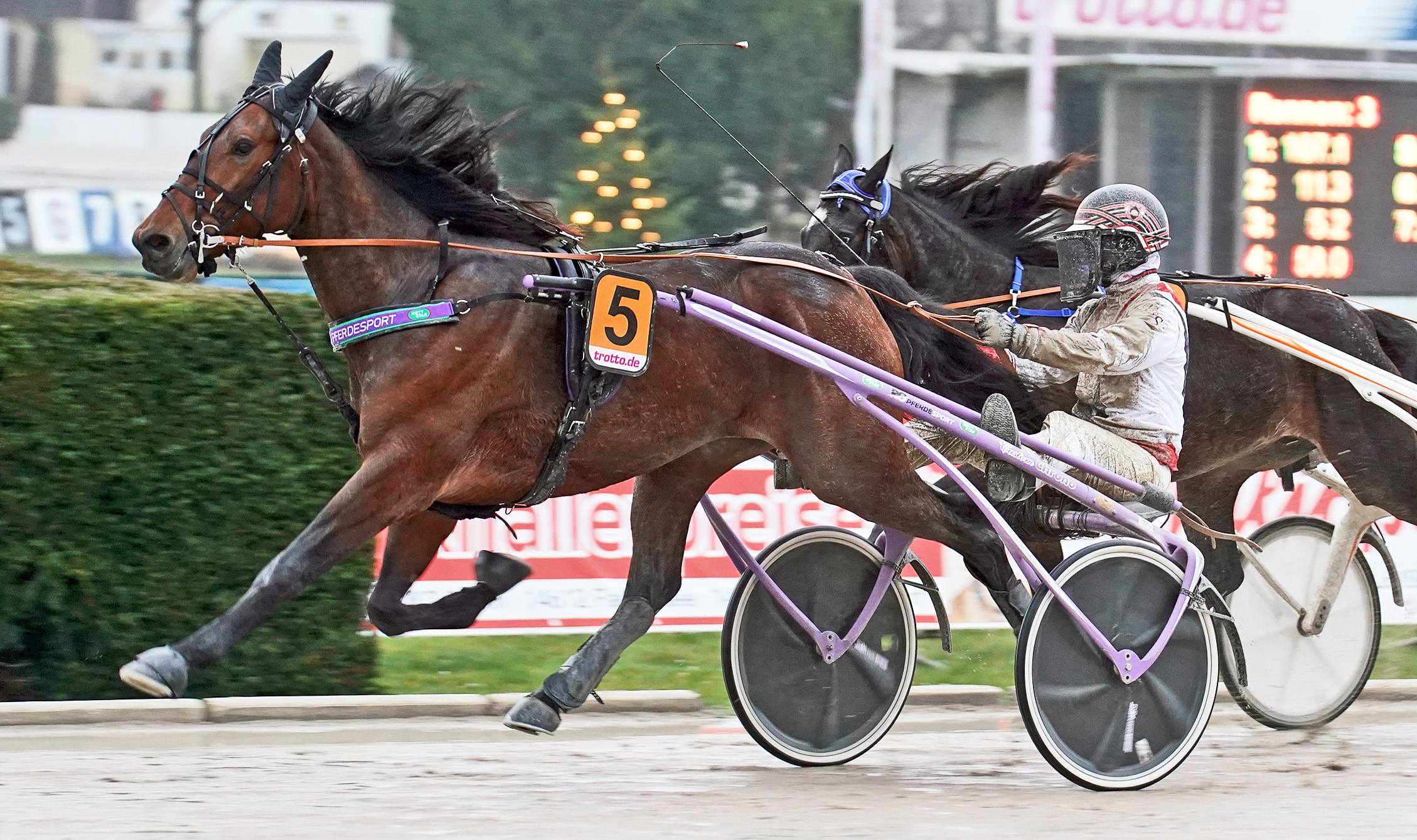 (BTV-press) Von Karin Walter-Mommert spendierter Glühwein und von einem festlich geschmückten und von Amy Fink höchst professionell gelenkten Mini-Traber angeführte Paraden: Auf der Derby-Bahn ging es am 4. Advent mächtig weihnachtlich zu. Und natürlich war die Sonntagveranstaltung auch für die Bestplatzierten des mit insgesamt 13.000 Euro dotierten Winter-Pokals der Amateure eine Art vorgezogene Bescherung.