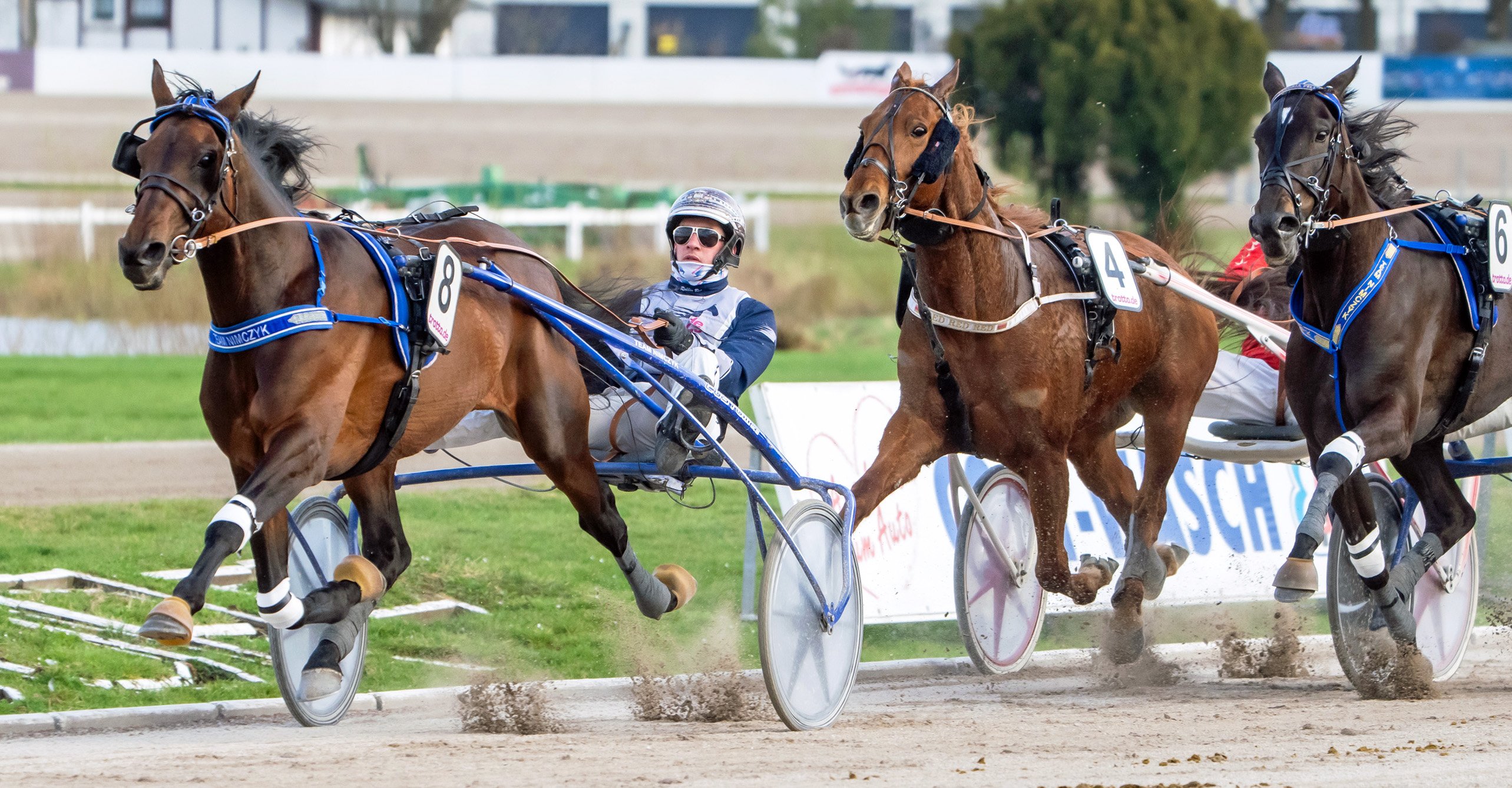 Michael Nimczyk gelang mit Arionas BE ein überlegener Start-Ziel-Erfolg. Der mit drei Längen Vorsprung in 15,5/1.900m erzielte Triumph war bereits der vierte Jahrestreffer für den Wallach. Mindestens ebenso gefreut haben dürfte sich seine Besitzerin Karin Walter-Mommert aber über den Sieg ihrer Debütantin Höwings Cinderella mit Marciano Hauber im Sulky. Die Stute ging auf der Schlussrunde in bärenstarken 14,4/1.900m einfach auf und davon und gewann mit Weile-Vorsprung.