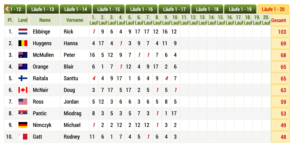 Einem Ehrenplatz im 8. Lauf hinter dem Neuseeländer Orange Blair mit Karin folgte im Durchgang 9 mit Karl Bianco gleich ein weiterer Volltreffer, bevor Ebbinge im 10. Lauf Villeneuf auf Rang zwei steuerte.