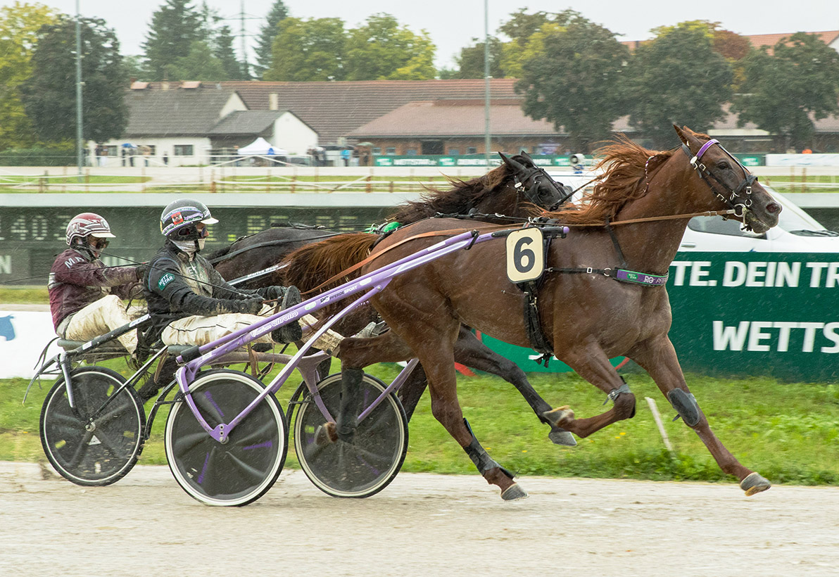 Den passenden Zeitpunkt für einen wuchtigen Vorstoß letztmals gegenüber fand Martin Geineder, der mit Crema di Noci den dritten Sieger der V6-Wette stellte. Schnell an allen Gegnern vorbeigezogen behauptete sich die Stute bis zum Schluss und verwies Kytana auf den Ehrenplatz.