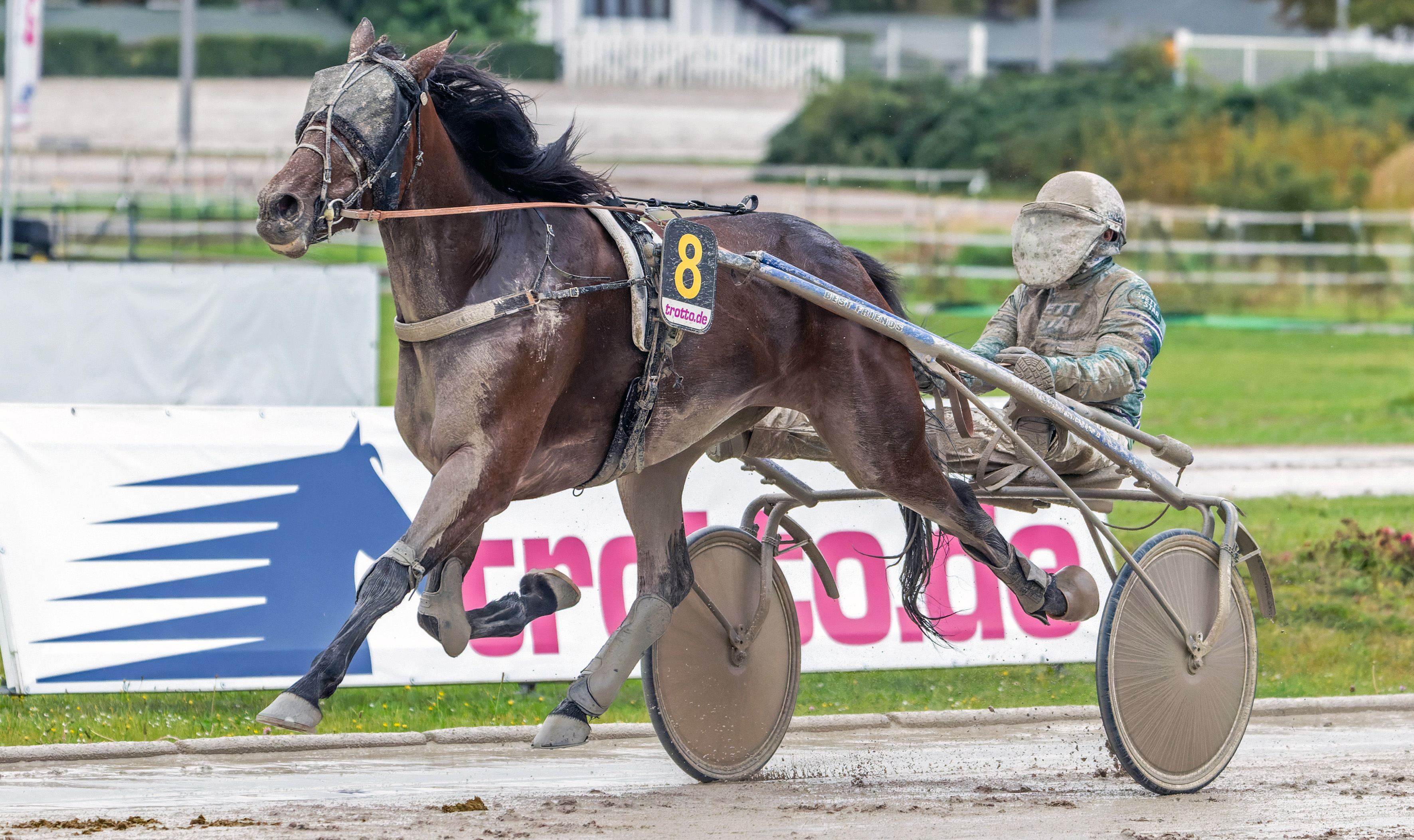 Mit dem für 1,4-faches Geld gehandelten Topfavoriten New Horizons landete Michael Nimczyk ebenfalls auf dem Ehrenrang. Der Sechsjährige enttäuschte keineswegs – aber obwohl der Goldhelm die Fahrt zwischendurch in den 22er-Bereich drosseln konnte, um seinem Schützling Reserven für das Finish aufzusparen, war das Resultat letztendlich eine glasklare Sache.
