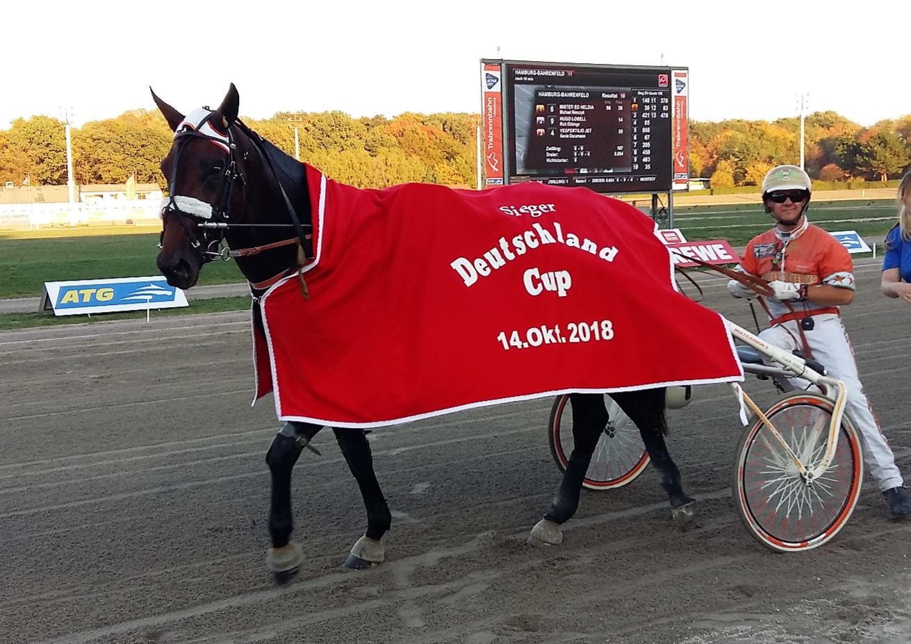 Vorausgegangen war eine überlegte Fahrt des deutschen Goldhelms, der sich aus zweiter Reihe eine Lage im Mittelfeld gesucht hatte und dort bis zum 500-Meter-Pfosten verharrte, bevor er den finalen Angriff setzte. Für einen Zweifach-Triumph der deutschen Zucht sorgte der lange führende Quick Vald, ein von Peter Heitmann gezogener Classic-Photo-Sohn in der Hand von Christoffer Eriksson.