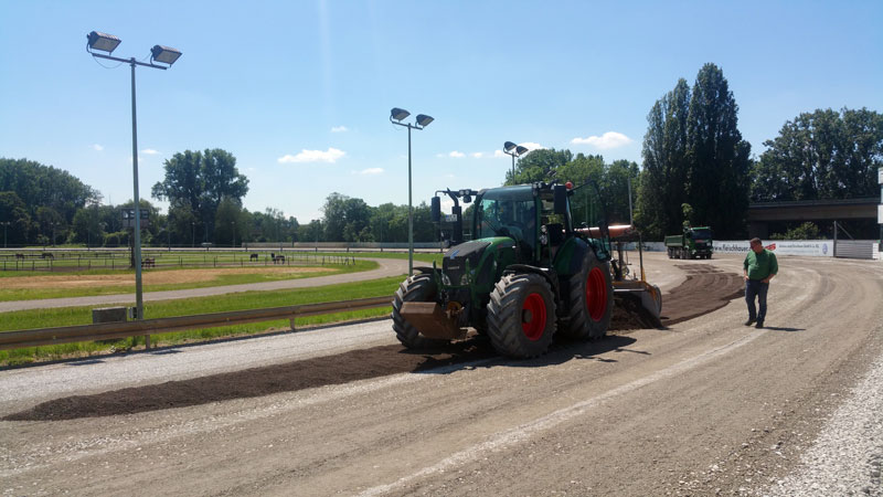 Etwas später als ursprünglich geplant, dafür aber immer noch rechtzeitig für den nächsten Renntag nähert sich die Sanierung der Mönchengladbacher Trabrennbahn ihrem Abschluss. Ende dieser Woche werden die letzten Arbeiten am und rund ums Geläuf erledigt sein, so dass in absehbarer Zeit auch die Aktiven in den Genuss der neuen Bahn kommen werden.