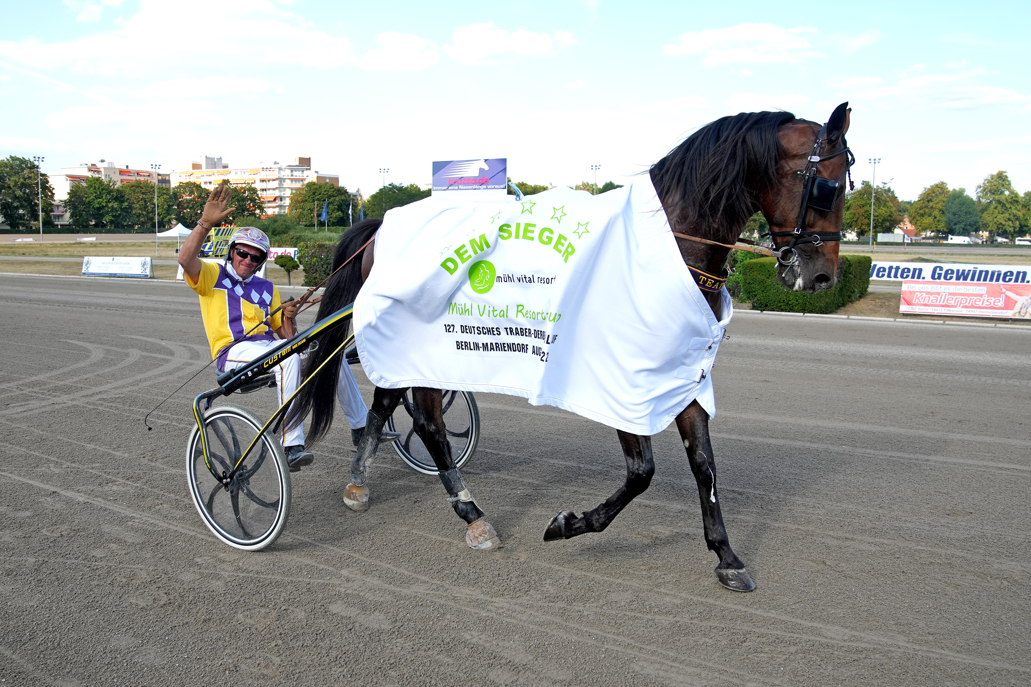 Mit 1:08,6 für die letzten 400 Meter gab Halva entschlossen Fersengeld, und sofort sprang die Ampel endgültig auf Grün Richtung 21. Sieg für den von Gerhard Holtermann vorbereiteten Zehnjährigen, „der immer mal wieder etwas überrascht werden muss. Er ist schon seit zweijährig auf Achse, hat die halbe Welt gesehen, fühlt sich aber bei Gerd am wohlsten“, kommentierte Tietz seinen dritten Treffer, mit dem er zum Fahrer des Tages avancierte.