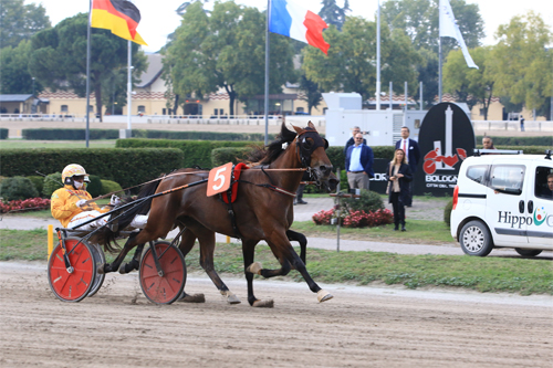 Da hält sich der Anreiz für ausländische Aspiranten in Grenzen, es auf einem ungewohnten ein 800-Meter-Oval wie jenem des Ippodromo Arcoveggio mit kurzen Geraden und engen Bögen zu versuchen. So blieben die vierjährigen Italiener unter sich, von denen sich Carlomagno d’Esis seit dem Frühjahr Laurent-Claude Abrivard angenommen hat. Mit drei Ehren- und vier vierten Plätzen in Frankreich zählte der Hengst zum engeren Kreis der Gemeinten.