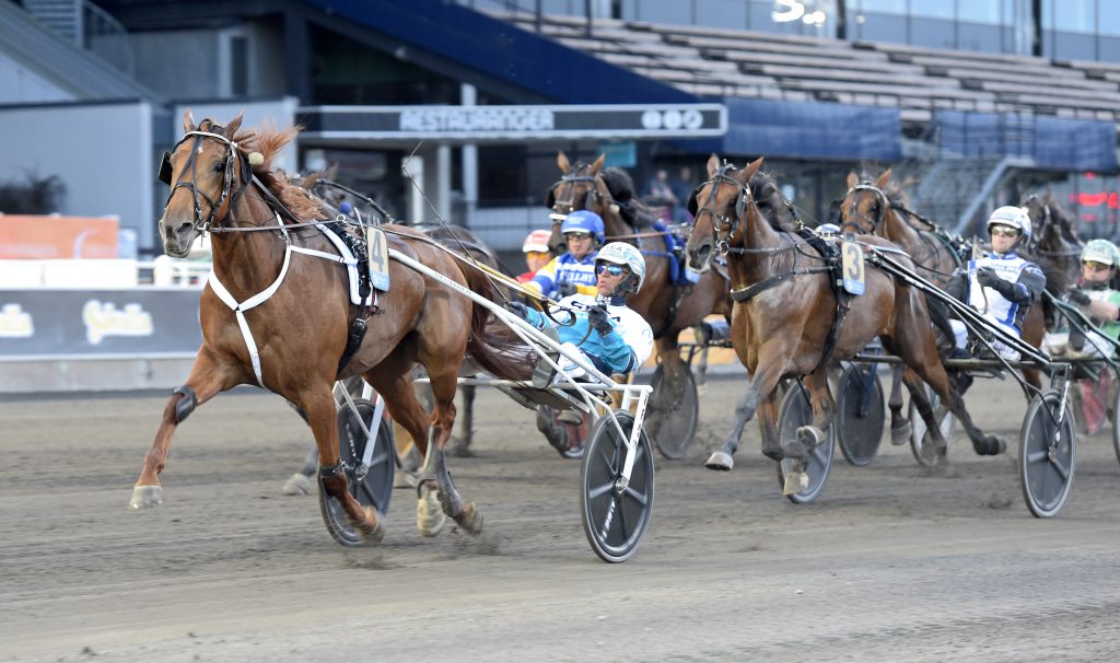 Der über 150.000 Kronen ausgestellte erste Scheck ging an Balsamine Font, mit der Björn Goop durchweg zurückhaltend als Frontmann der Außenspur unterwegs war. Im Schlussbogen ließ er die Filipp-Roc-Tochter im Windschatten der sofort führenden Fascination tief Luft holen und sie dann mit frischem Atem an der für die Kasse ihres Züchters Jean-Pierre Dubois laufenden Schwester Ecurie D.s in 1:11,2 zu 1:11,3 um eine Länge vorbeifliegen.