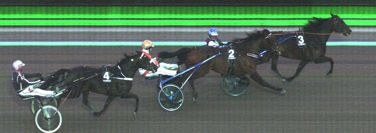 Einsperren lassen wollte sich Nimczyk mit dem 13:10-Favoriten nicht und wechselte nach einem Kilometer in die Todeslage. Richtig gehobelt wurde ab 800 Meter vorm Pfosten, wo bei Zwischenzeiten um die 1:11 Noren Luxi die Waffen streckte und auch Luciano Bryne Probleme hatte, Kontakt zu Tetrick Wania zu halten. Der raufte prächtig, doch hielt Corazon Combo unter einigen Rüttlern und Schüttlern eine Dreiviertellänge Vorteil fest. Seinen kleinen Schwächeanfall machte Luciano Bryne vergessen; der von Make it Happen gezeugte Hengst sicherte sich „Bronze“.