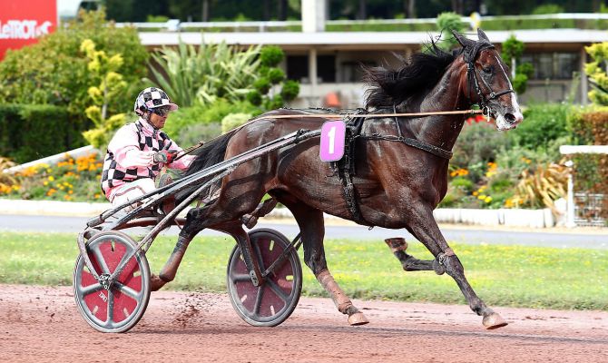 Mitte der Tribünengeraden wurde Robin Bakker für die Spitze durchgewunken, im zweiten Bogen fiel auch noch Fric du Chêne aus, dessen Position als erster Verfolger Feliciano übernahm. Ids Boko blieb innerer Dritter vor Folelli, den Part durch die Todesspur bekam Fakir du Lorault vor Florida Sport aufs Auge gedrückt. Im Vertrauen auf seinen Partner saß Robin Bakker bei Zwischenzeiten um die 1:12 keineswegs auf der Bremse und schien noch an der letzten Ecke alle Fäden in der Hand zu halten. Die Ernüchterung kam auf den finalen 250 Metern, als der von Eric Raffin perfekt geschonte Feliciano eingesetzt wurde und rasch wie deutlich die Oberhand gewann. Grenzenlos wurde sie, als auch der Ehrenplatz noch flöten ging, für den sich Fakir du Lorault um 1½ Längen vorbei ackerte. Wenig kam zum Schluss desgleichen von Ids Boko, der von Björn Goop mit viel Finesse im sauberen Trab gehalten wurde und drei weitere Längen zurück so eben Platz vier vor Florida Sport festhielt. (Foto: paris-turf.com)