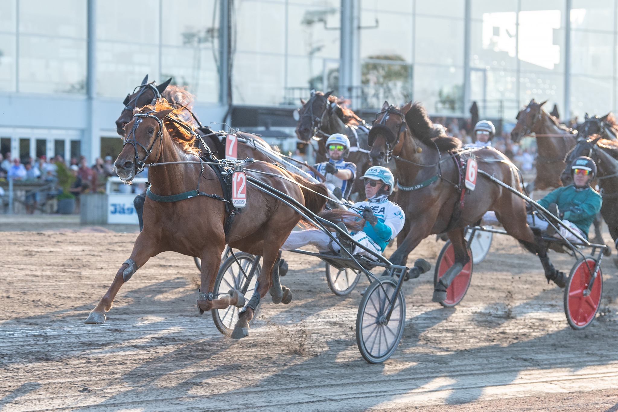 Insofern waren Jennifer Sisu (3) und Mary Ann Lane , die von der „5“ einen Raketenstart hinlegte, bestens bedient. Nach 500 Metern löste die mehr als zwei Millionen SEK schwere Jennifer Sisu Johan Untersteiners Orlando-Vici-Tochter „in the lead“ ab und brachte das Ding sicher mit einer halben Länge Vorsprung nach Hause. Magnus Djuse verwandelte den 13:10-Elfmeter für Timo Nurmos eiskalt und setzte mit 1:12,5 den ersten Richtwert.