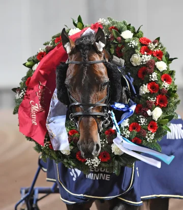 Werner Pietschs Purple Rain (Foto: Instagram teamnimczyk) blieb bei 1:08,8-Tempo zunächst in dritter Spur verhaftet, durfte nach 500 Metern auf den Todessitz, wo er Danao degli Dei aus weiter Ferne seine einsamen Kreise ziehen sah, und hatte bei der Abrechnung mit Ersatzfahrer Kim Eriksson als Vierter (1:12,3; 19.000 SEK) deutlich mehr zu bestellen als der im vierten Paar außen untergekommene Frankie Godiva (6. in 1:12,9, 10.000 SEK) aus dem inzwischen auf 150 Pferde angewachsenen Schweden-Lot Karin Walter-Mommerts.