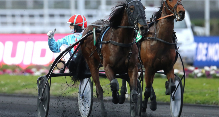 Überraschend viel Opposition schlug dem Wallach am Wettmarkt entgegen, der ihn mit 24:10 knapp vor Eros du Chêne (36) und Mindyourvalue W.F. (49), der als Schwede fürs internationale Flair verantwortlich zeichnete, in der Favoritenrolle sah. Davon ließ sich Standardpartner Alexandre Abrivard nicht irre machen, zumal ihm die Konkurrenz das Rennen in den Rachen lief. Während Vertige de Chenu erneut nicht glatt in die Partie kam und mit 40 Meter Abstand hinterherlief, schoss Noémie Hardy mit Volcan de Bellande, dem nächsten der am 31. März Ausjährigen, wie der Blitz in Front und führte im ersten Bogen, jenem von Joinville, mit 15 Metern vor Vivier de l’Oison, Boss du Meleuc und Mindyourvalue W.F., den Yoann Lebourgeois konträr zu sonstigen Gepflogenheiten in Deckung hielt. Zügig genug war’s mit 1:05,5 für die ersten 675 und 1:08,5 nach 1175 Meter sowieso.