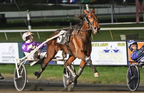 Kräftig schwitzen musste ihre Entourage aber doch noch, denn aus dem Nirgendwo schlängelte sich Zuchtgefährtin Glamorous Hanover durch die kämpfende Meute und riss Miller aus allen Träumen. Zum Glück witterte der erschrockene 58-jährige die Gefahr drei Spuren weiter innen rechtzeitig und stukte Sambuca Hanover um Haupteslänge eher an die Linie, die mit 174.817 Dollar ihren Einstandspreis von 200.000 „bucks“ (Harrisburg, 7. November 2022, Nr. 132) noch nicht ganz amortisiert hat.