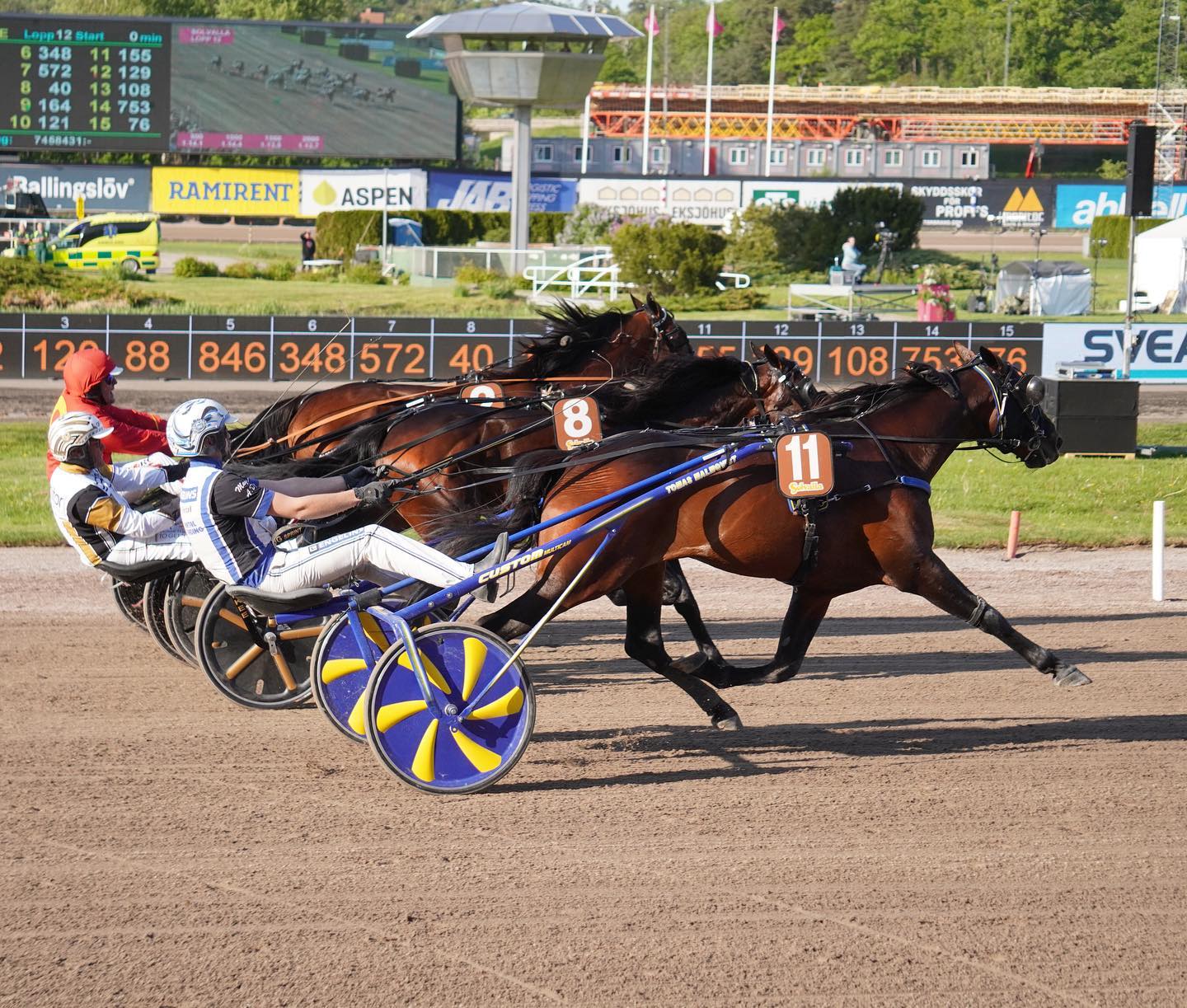 Hinter der Redén-Stute postierten sich A Perfect Dutchess, Riet Hazelaar und Zeudi AMG, die Alex Gocciadoro am Start kurz aus dem Rhythmus geraten war. 700 Meter vorm Zielstrich schnupperte Riet Hazelaar in Spur drei, kam dort jedoch lange nicht entscheidend weiter und schien Mitte der Schlusskurve am Ende ihrer Mittel. Das ganze Gegenteil steckte in Zeudi AMG: In fünfter Spur fegte die Ideale-Luis-Tochter die Zielgerade herunter, dass es selbst ihrem Steuermann ein wenig die Sprache verschlagen sollte, und rauschte überlegen fünf Längen vor einem Quintett ihrem 26. Sieg entgegen, mit dem ihr Einkommen auf 2.735.391 SEK kletterte.