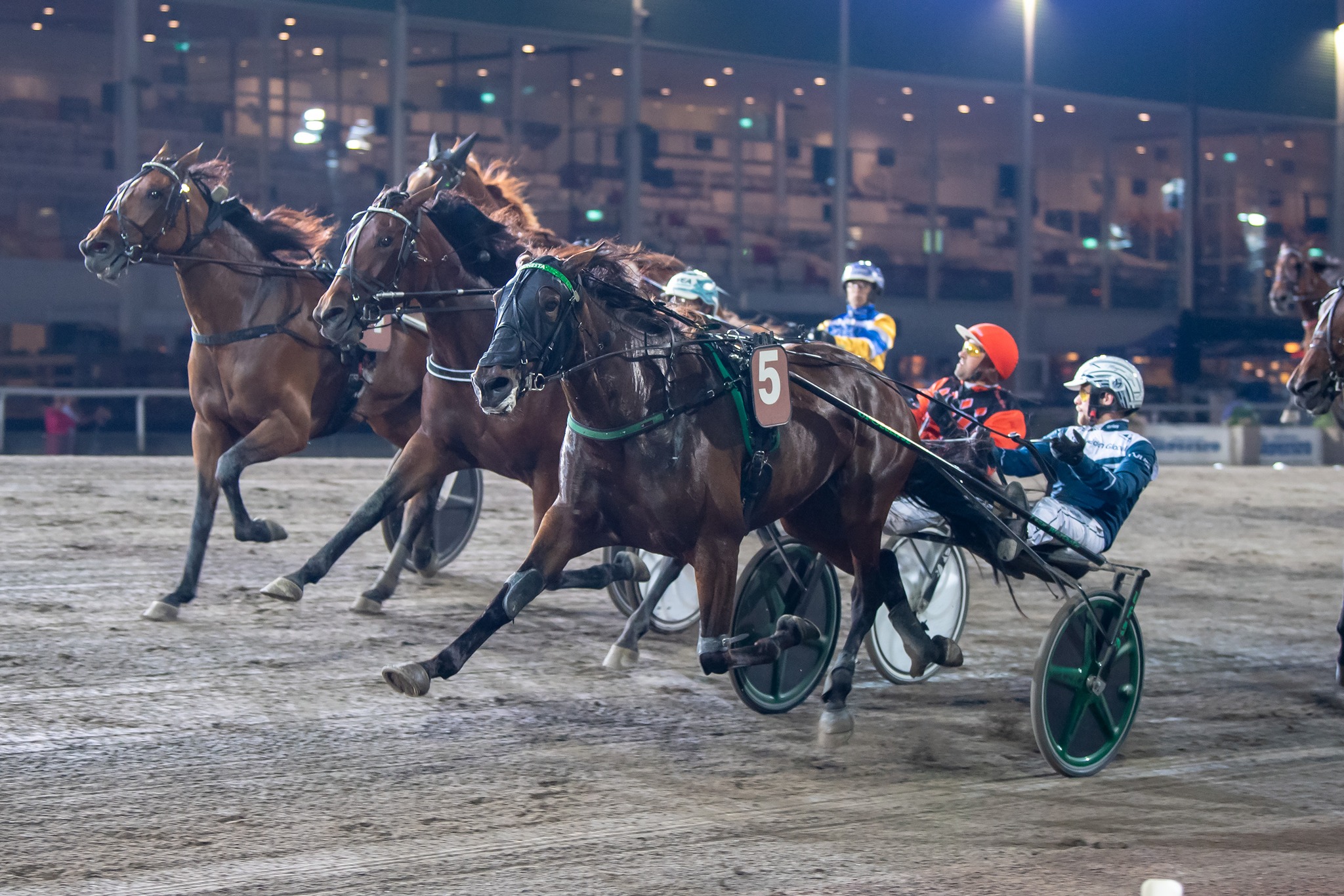 Eine Klasse für sich war stramm vorneweg die StoChampionatet-Dritte Daim Brodda (4), mit der Norwegens oftmaliger Champion Eirik Höitomt ungestört seine Kreise zog und für 18:10 seine Anhänger keinen Moment schwitzen ließ. Für die Readly-Express-Tochter war’s der siebte Volltreffer aus lediglich zehn Auftritten. Sie wird die Derby-Stoet mit 961.613 SEK in Angriff nehmen. Spannend wurde es um Platz zwei, für den im knappen Dreikampf Flamenco Girl den Kopf haarscharf voraus hatte.
