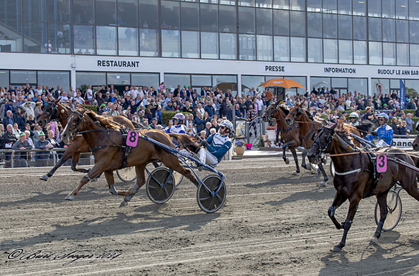 Deutschlands Derby-Sieger 2021 Lorens Flevo (117:10) machte aus dem vierten Paar außen auf der letzten Überseite in dritter Spur auf sich aufmerksam, doch ging dem von Joakim Lövgren gesteuerten Fuchs auf den finalen 300 Metern kräftig die Puste aus. Er passierte die Linie in 1:15,5/2990m als Neunter, wofür es kein Hafergeld mehr gab.