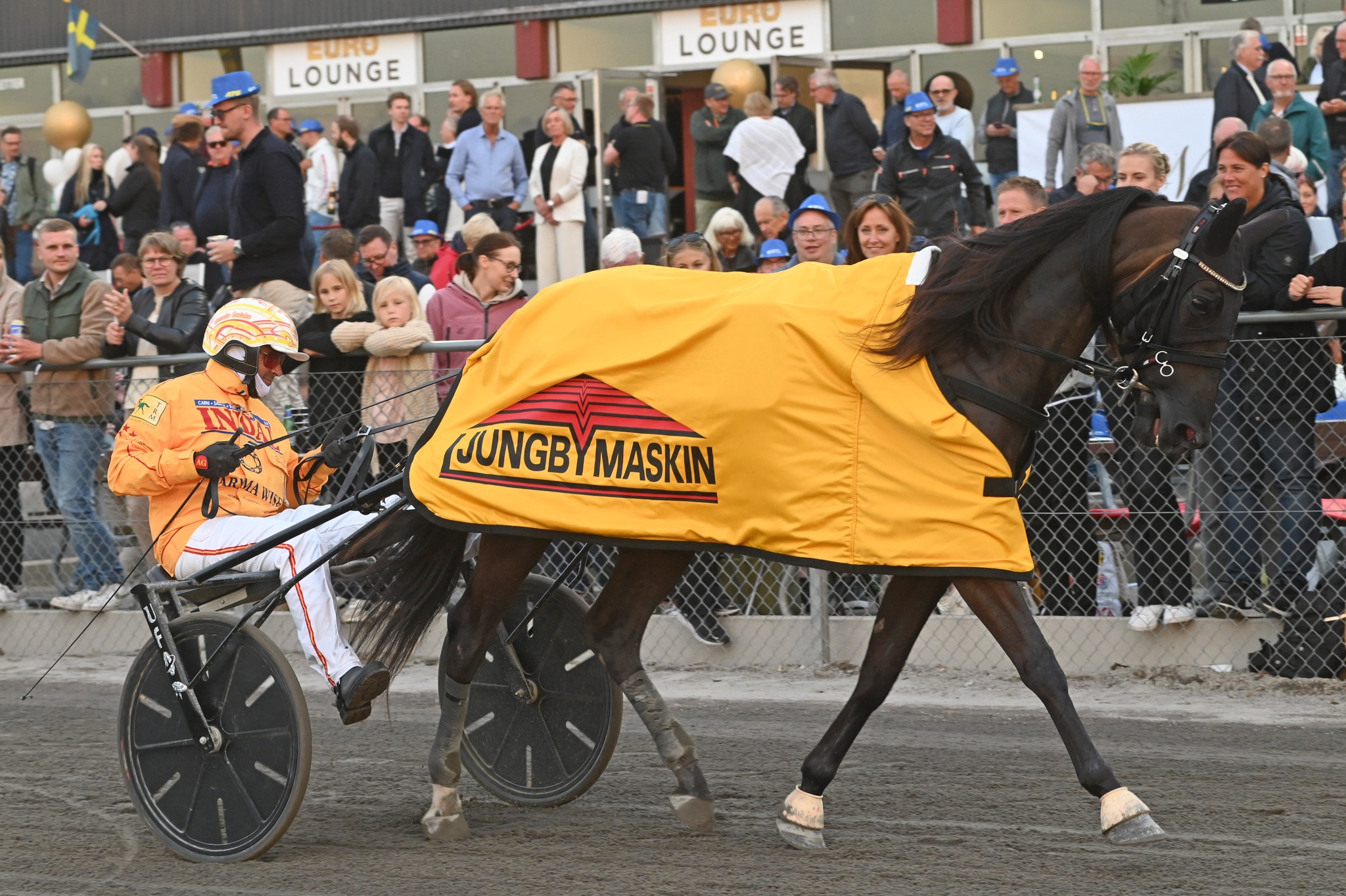 „Das war heute unser Tag. Alles lief nach Plan. Ich hätte nie gedacht, dass Hustle Rain zum SprinterMästaren würde, obwohl er ja schon im Königspokal als Vierter eine exzellente Figur abgegeben hat. Natürlich war der Vorlauf außen herum nicht von Pappe, aber ich hatte da schon das Gefühl, er sei heute bärenstark. Dieser Sieg und der im Jubileumspokalen 2021 mit Aetos Kronos ragen natürlich heraus. Ich muss mich mal kneifen, so unwirklich gut läuft’s nun schon im dritten Jahr in Folge für mich“, schwärmte Magnus Djuse, der als jüngster schwedischer Fahrer aller Zeiten kurz vor seinem 1.000. Sieg steht.